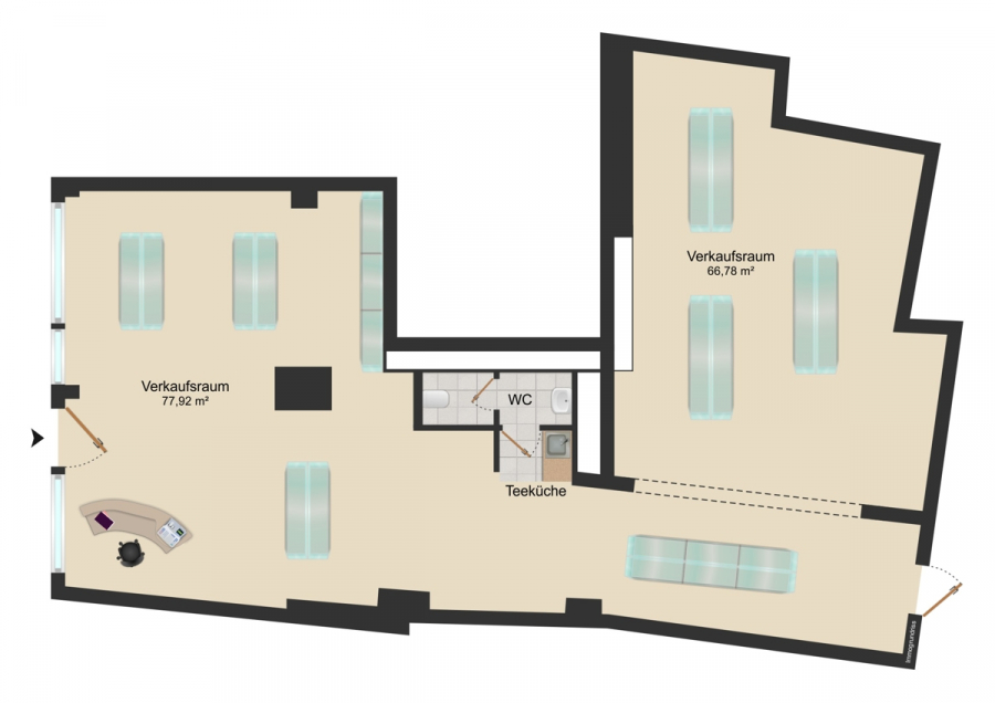 ca. 200 m² Verkaufsfläche im vorderen Bereich