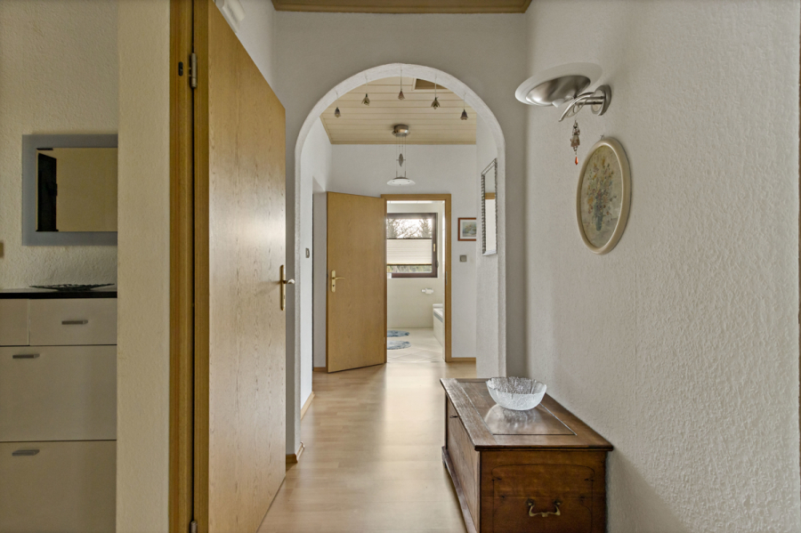 Die fünf Wohnräume verteilen sich auf das Souterrain und das Erdgeschoss. Auf beiden Wohnebenen befindet sich ein modernisiertes Badezimmer.