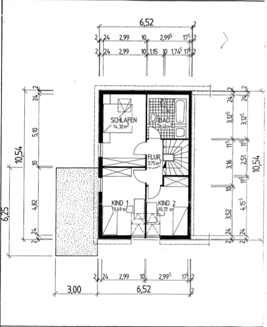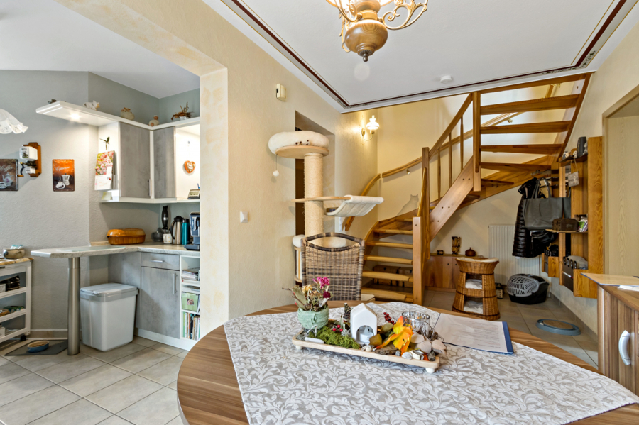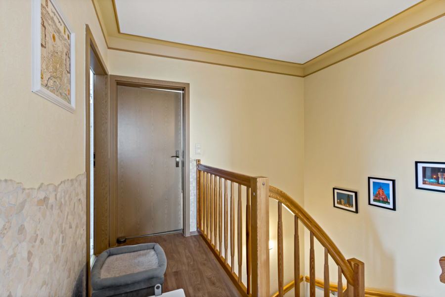 Über eine Treppe gelangen Sie in das Obergeschoss mit 3 weiteren Räumen und dem Bad . Das Bad wurde erst 2023 modernisiert und ist mit einer bodengleichen Glaswanddusche ausgestattet.