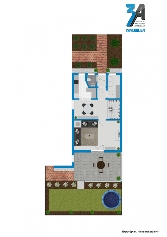 Das gesamte Grundstück umfasst 275 m², und bietet genug Platz um in Stadtnähe eine kleine Oase genießen zu können.