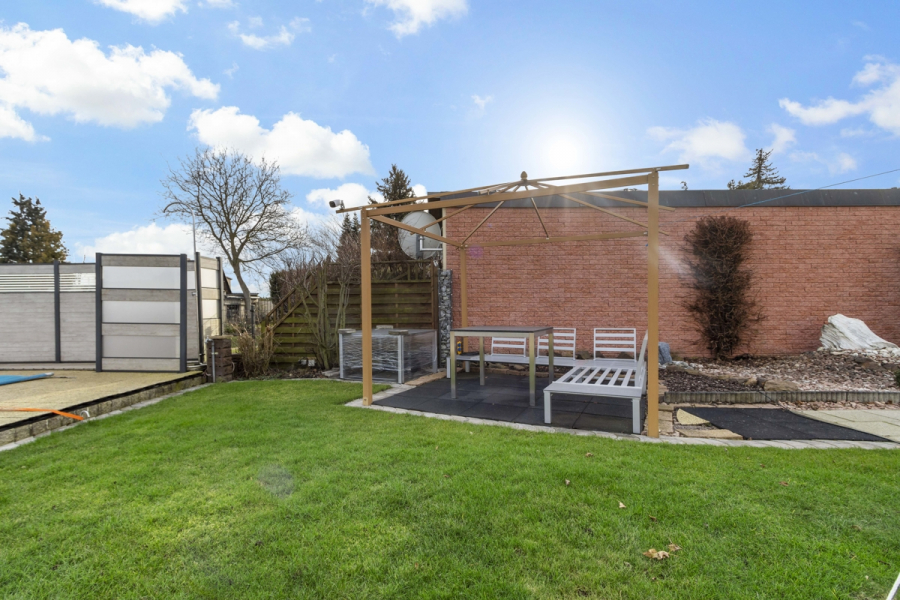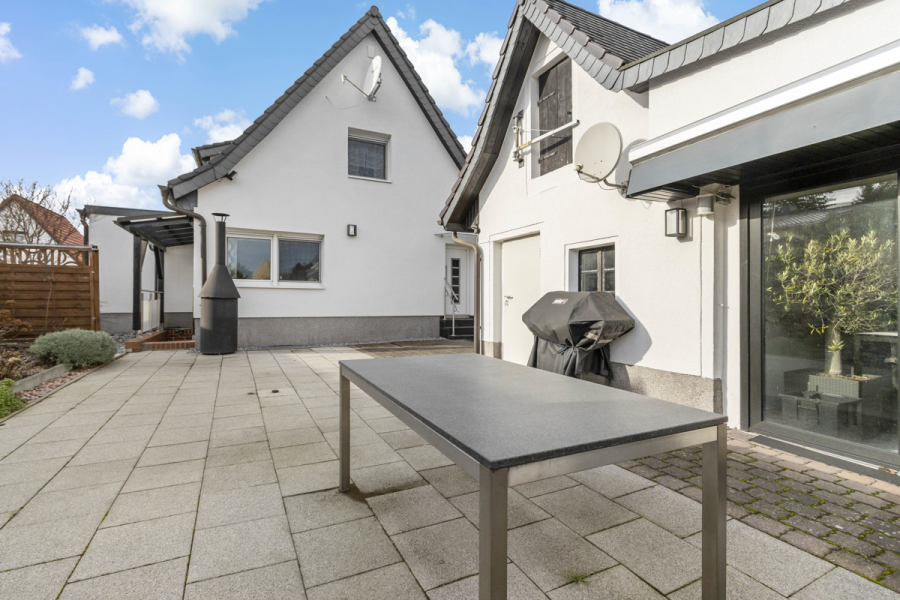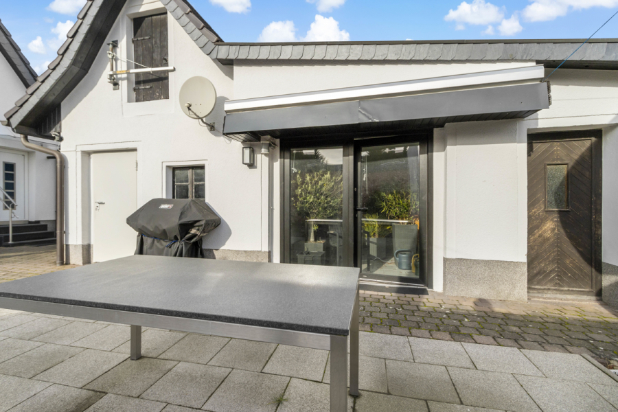 Vom Wohnzimmer aus gelangen Sie über den Hinterausgang auf Ihre Sonnenterrasse mit Rundumblick in Ihren Garten.