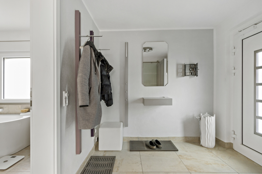 Beim Betreten des Hauses werden Ihnen sofort der helle und offene Eingangsbereich sowie die großzügige Raumgestaltung ins Auge fallen.