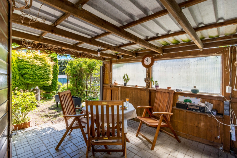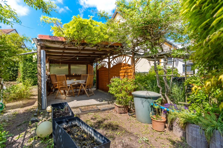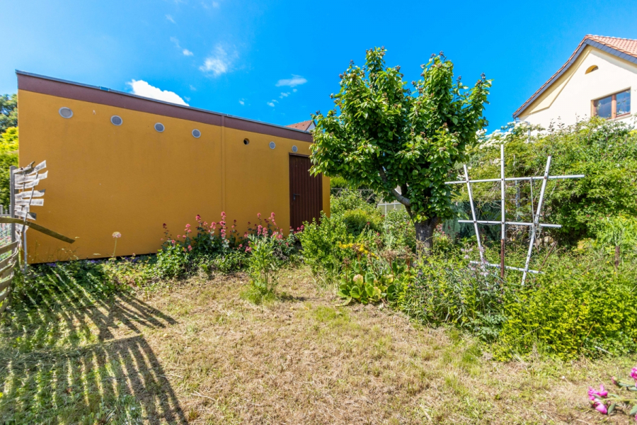 Der Garten hat eine überschaubare, gärtnerisch gut beherrschbare Größe und eignet sich durch die hinter dem Haus befindlichen grünen Flächen zum relaxen.
