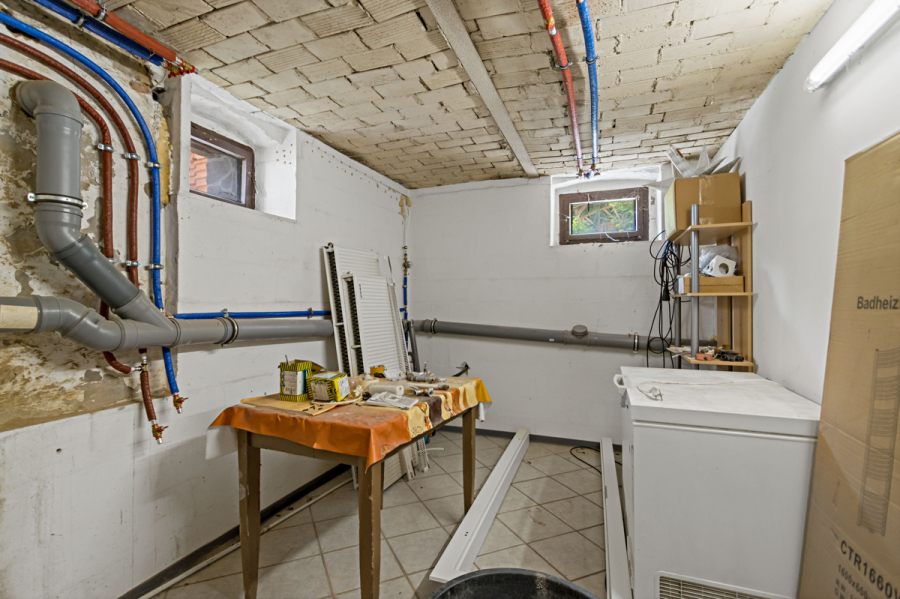 Es handelt sich um ein 2 geschossiges Einfamilienhaus, voll unterkellert in Massivbauweise. Zum Haus gehören ein angelegter, eingefriedeter Garten, ein gepflasterter Innenhof mit Nebengelass, ein überdachter Bereich zum Grillen oder Sitzen und eine Doppelgarage.