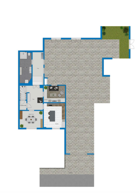 Im Erdgeschoss befinden sich der große Eingangsbreich, die Traumküche mit absoluter Traumeinbauküche! Zwei Zimmer und das große Bad befinden sich ebenfalls im Erdgeschoss. Ein geplantes und vorbereitetes Gäste-WC kann mit wenigen Handgriffen fertiggestellt werden.
