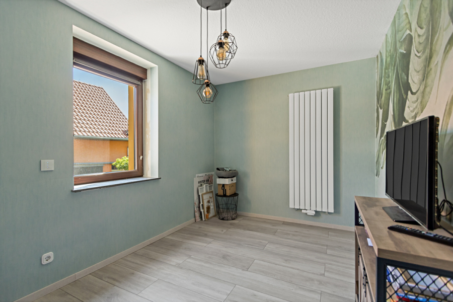 Auf halber Ebene zum ausgebauten Dachgeschoss befindet sich ein kleineres Zimmer, welches sich ideal als Home-Office Bereich eignet.