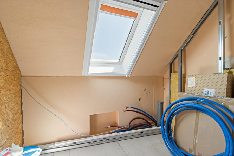 Zusätzlich war für das Dachgeschoss ein weiteres Bad geplant und befindet sich aktuell im Ausbaustatus.
