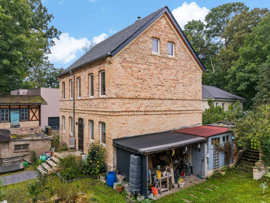 Das etwa 1.060 m² große Grundstück hinter dem Haus bietet zahlreiche Möglichkeiten zur individuellen Gestaltung. Eine großzügige Terrasse lässt sich ebenso realisieren wie ein Garten mit vielfältiger Bepflanzung oder ein Spielbereich für Kinder. Vor dem Haus befindet sich aktuell noch ein Schuppen, der bei Bedarf entfernt werden kann, um Platz für ein Carport mit bis zu zwei Stellplätzen zu schaffen.