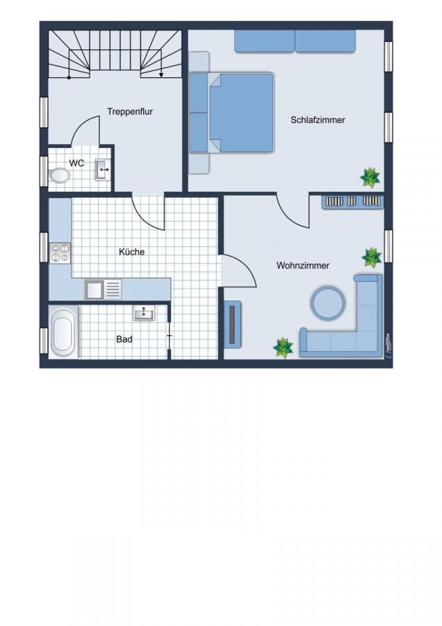 Um den Wohnstandard von 2021 der Immobilie zu erreichen, sollte jedoch über Modernisierungen/Renovierungen nachgedacht werden.