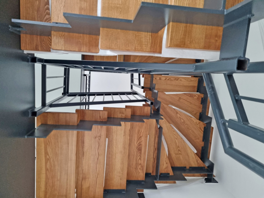 Zur Wangentreppe passendes, pflegeleichtes Laminat sorgt für ein behagliches Wohngefühl in den Räumen.