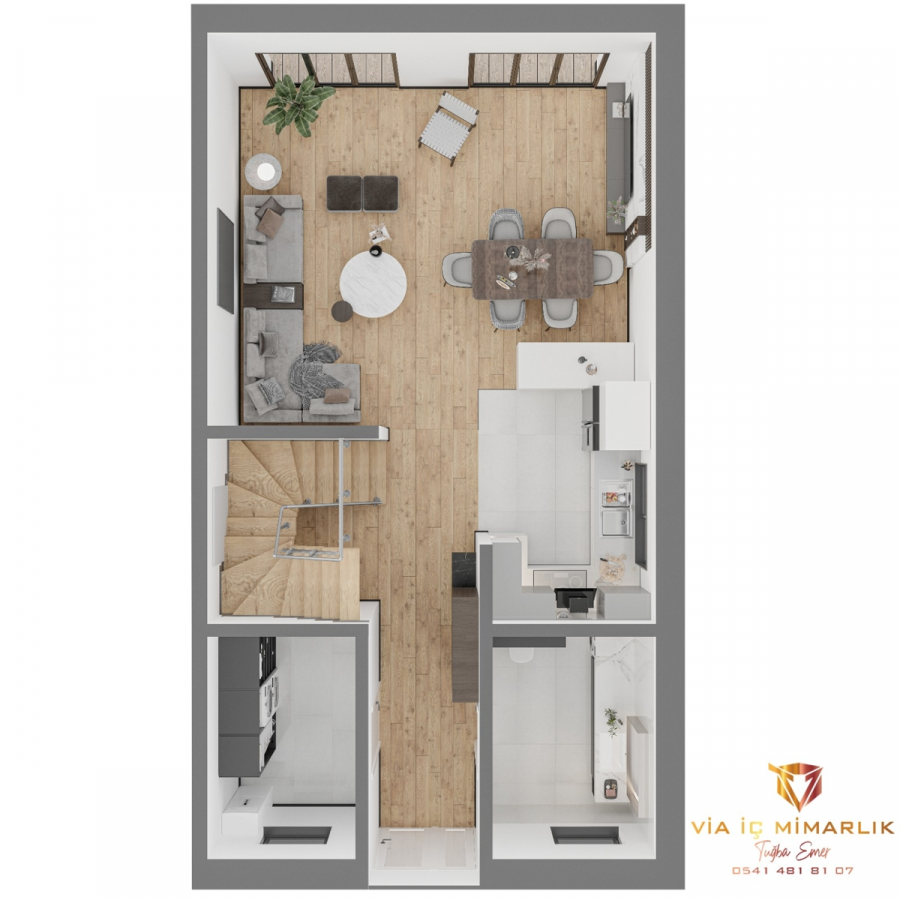 Im Erdgeschoss erwartet Sie ein großzügig gestalteter Wohn-Essbereich mit Zugang zur großen Terrasse und bodentiefen Fensterfront.