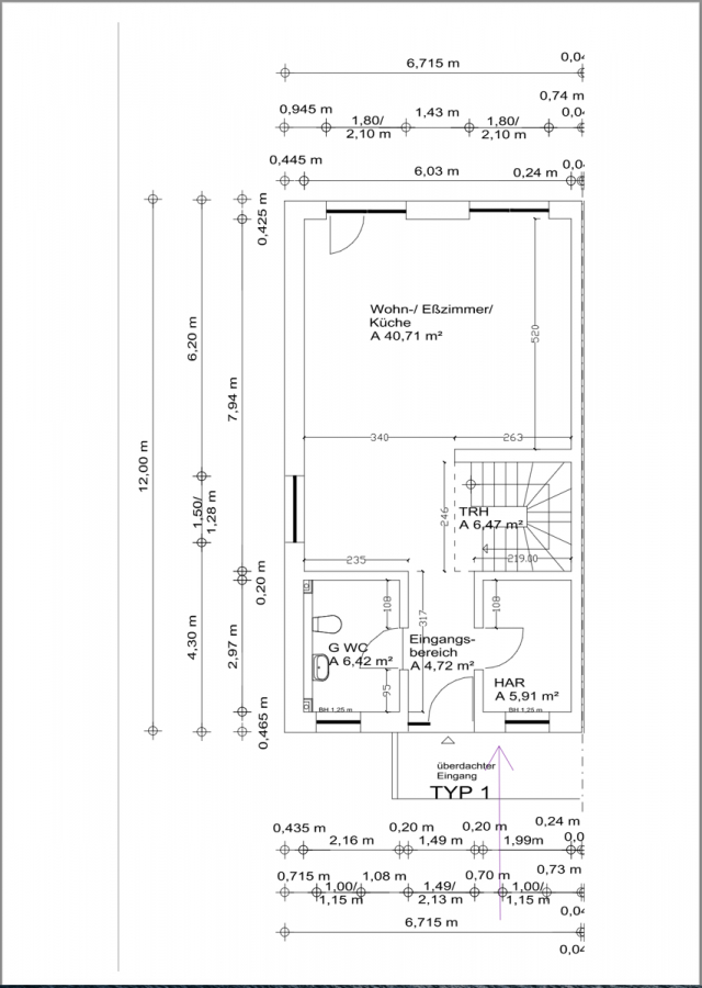 Ein Gäste WC mit Waschmaschinenanschluss und der Hauswirtschaftsraum mit allen Hausanschlüssen befindet sich im vorderen Bereich des Erdgeschosses.