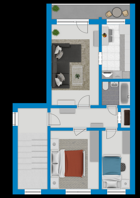 Die Wohnung überzeugt durch einen praktischen Grundriss und ein angenehmes Wohngefühl. Besonders hervorzuheben ist das großzügige Wohnzimmer mit direktem Durchgang zur Küche, was eine offene und freundliche Atmosphäre schafft. Eine Einbauküche ist bereits im Kaufpreis enthalten, ebenso ist die Wohnung teilweise möbliert, was einen unkomplizierten Einzug oder eine schnelle Vermietung ermöglicht.