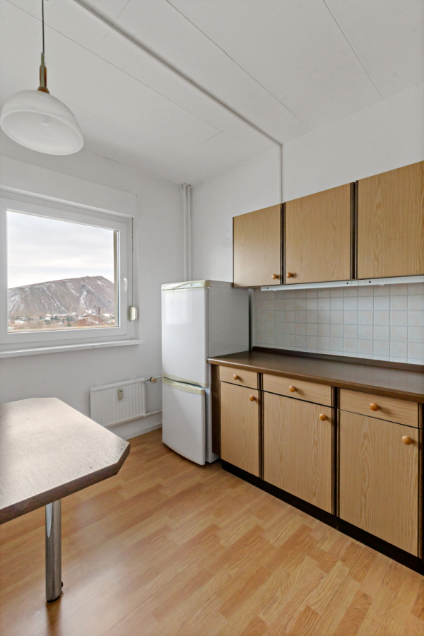Zum Verkauf steht eine attraktive 3-Raum-Eigentumswohnung in Teutschenthal, gelegen im 2. Obergeschoss eines gepflegten Mehrfamilienhauses. Das Wohngebäude wurde ca. 1989 errichtet und später saniert, wodurch sich die Immobilie heute in einem soliden Zustand präsentiert.