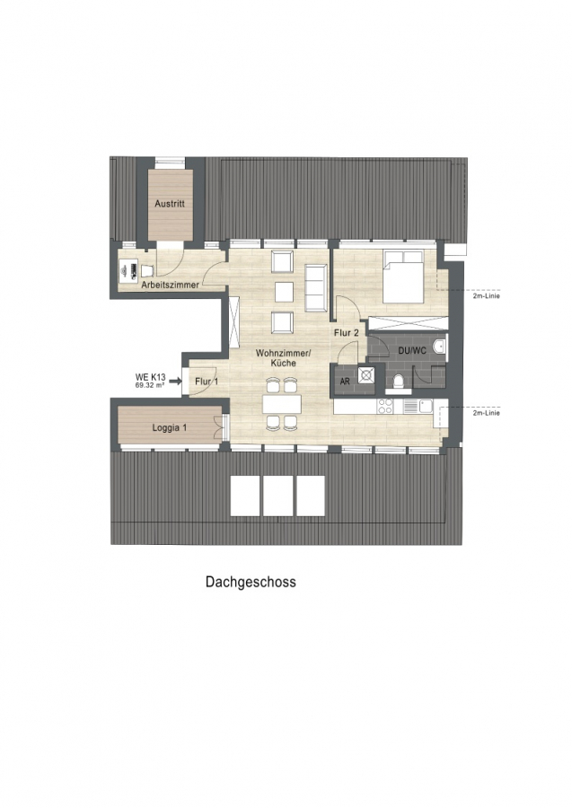 Die Grundrisse sind so individuell wie außergewöhnlich – geprägt von historischen Bauelementen, spannenden Raumzuschnitten und modernen Wohnansprüchen. Großzügige Fensterflächen schaffen helle, freundliche Wohnräume mit besonderem Ambiente. Darüber hinaus verfügt jede Einheit über eine Loggia, einen Balkon und/oder eine Terrasse, wodurch zusätzlicher Freiraum und hohe Wohnqualität garantiert werden.