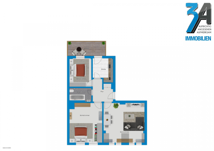 Auf ca. 70 m² erwartet dich eine großzügige Wohnfläche, die sich auf drei gut geschnittene Zimmer verteilt. Du hast die Wahl aus zwei gemütlichen Schlafzimmern, einem stilvollen Badezimmer und einem hellen Wohnzimmer, das zum Entspannen einlädt. Der Boden besteht aus hochwertigem Laminat und stilvollen Fliesen – perfekt, um deine eigenen Einrichtungsideen zu verwirklichen.