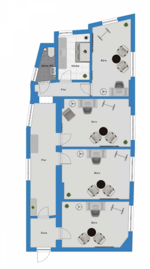 Effiziente Grundrissgestaltung: Der Grundriss ist optimal gestaltet, um eine flexible Nutzung und eine angenehme Arbeitsatmosphäre zu gewährleisten.