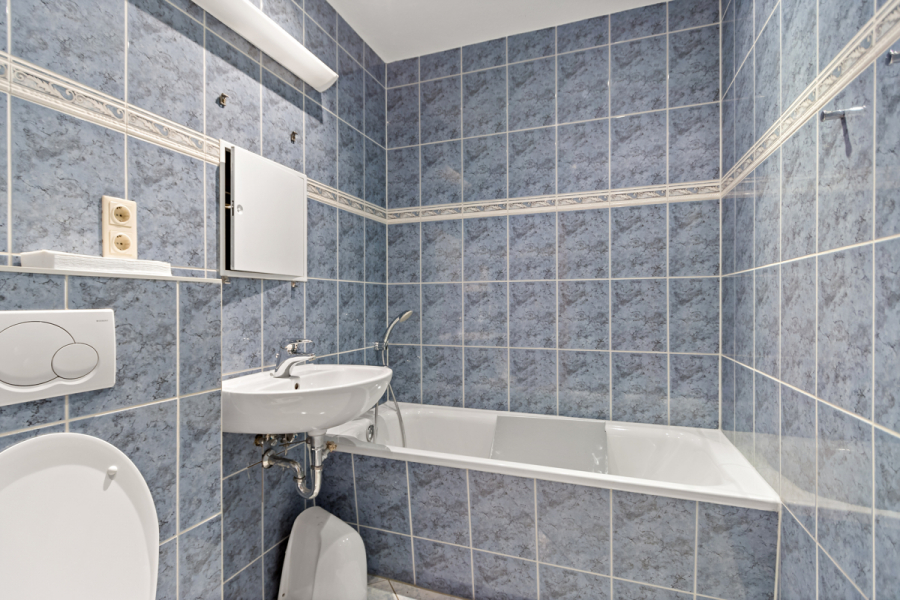 Der Bodenbelag besteht aktuell aus Teppichboden sowie Fliesen. Ein Badezimmer mit WC und Badewanne ist vorhanden und rundet die Funktionalität der Einheit ab. Zusätzlich steht ein Balkon zur Verfügung, der sich beispielsweise für Pausen nutzen lässt.