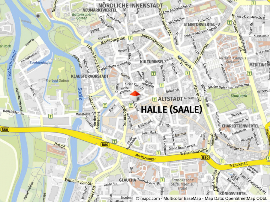 Die Immobilie befindet sich in der Oleariusstraße 4, mitten im Herzen von Halle (Saale) und nur wenige Schritte vom Hallmarkt entfernt. Die Lage zählt zu den attraktivsten der Innenstadt.