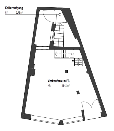 Im Untergeschoss befinden sich das Mitarbeiter WC sowie zusätzliche Lagerflächen. Im EG die klassische Verkaufsfläche und eine funktionale Küche. Das Obergeschoss bietet eine offene Galerieebene, die sich perfekt als Beratungs- oder Präsentationsfläche eignet, ergänzt durch ein modernes Kunden-WC.