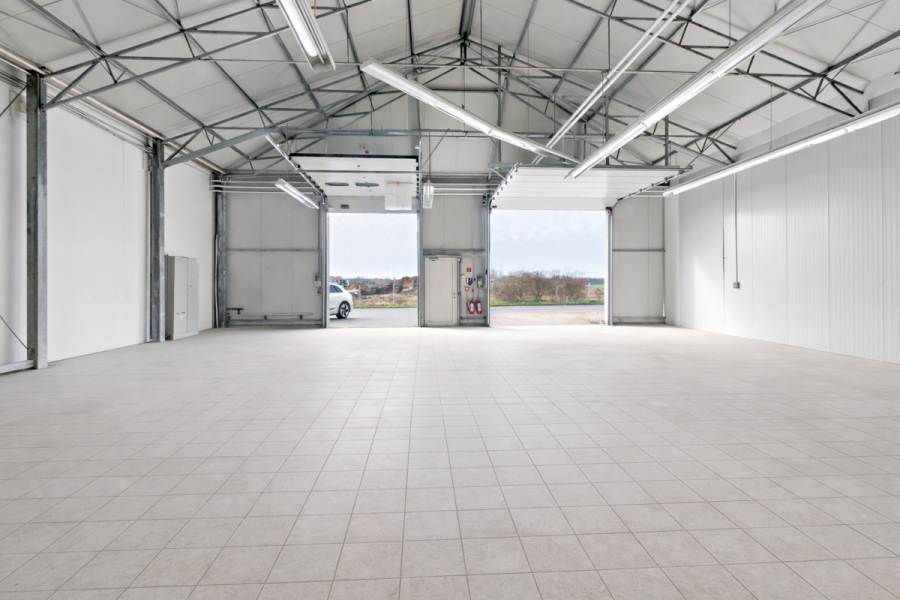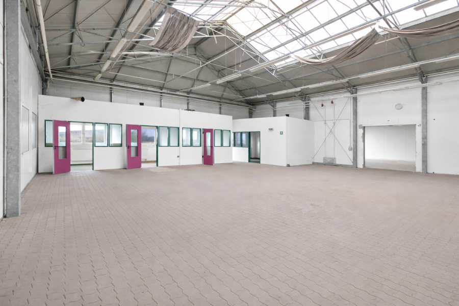 Die Lagerhalle überzeugt durch eine Deckenhöhe von bis zu ca. 6,00 m, wodurch auch eine Hochregallagerung oder die Nutzung mit größeren Maschinen problemlos möglich ist.