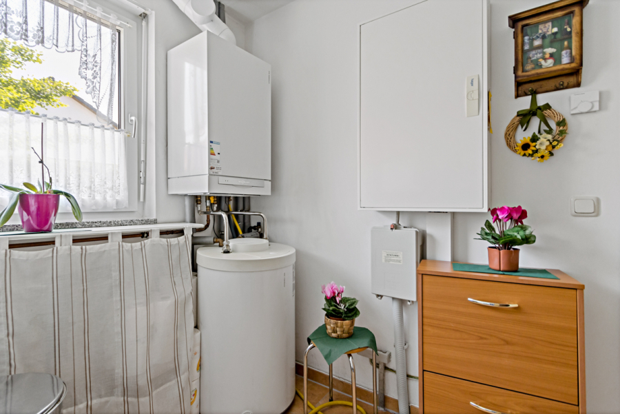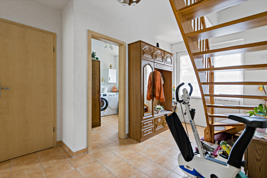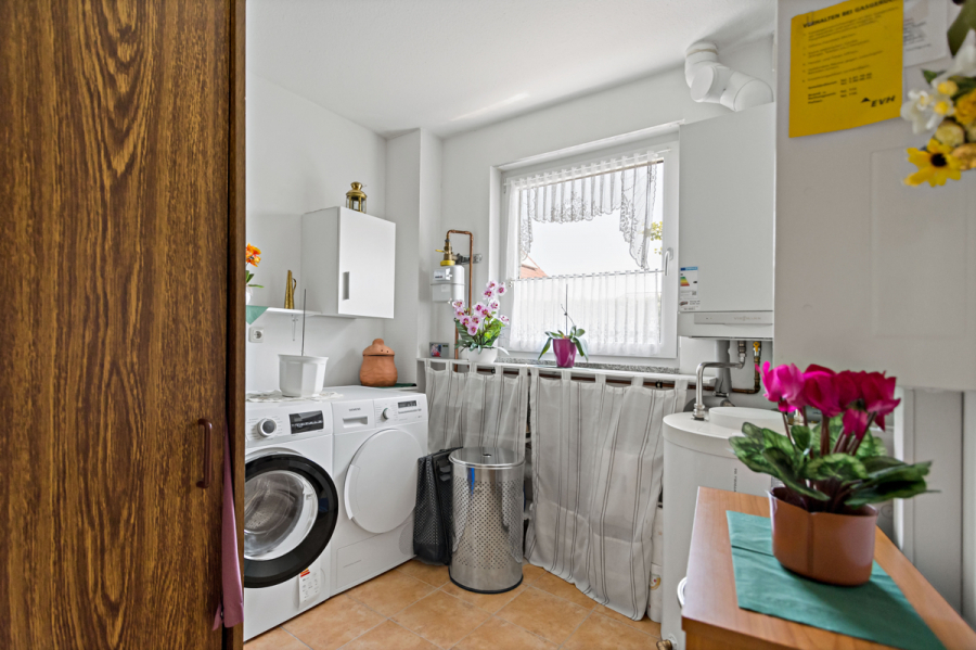 Weiterhin befinden sich im Erdgeschoss das Gäste-WC und der Hauswirtschaftsraum.