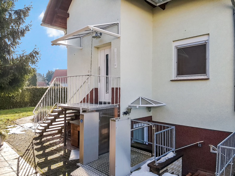 Im Erdgeschoss erwartet Sie ein großzügiger Wohn- und Essbereich als zentraler Mittelpunkt des Hauses. Besonders der Essbereich überzeugt durch seine helle Gestaltung: Große Fensterflächen sorgen für ein freundliches, lichtdurchflutetes Ambiente und schaffen eine angenehme Atmosphäre für gemeinsame Mahlzeiten und gesellige Abende. Die Küche ist direkt angebunden und sinnvoll in den Grundriss integriert; die vorhandene Einbauküche ist bereits im Kaufpreis enthalten. Ergänzt wird diese Etage durch ein Schlafzimmer, ein weiteres Zimmer (ideal als Arbeits- oder Gästezimmer), ein Badezimmer sowie ein separates Gäste-WC. Ein Außenlift ermöglicht zudem einen komfortablen Zugang zum Erdgeschoss und unterstützt barrierearmes Wohnen.