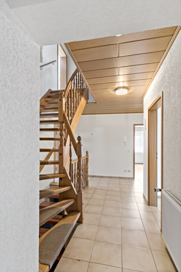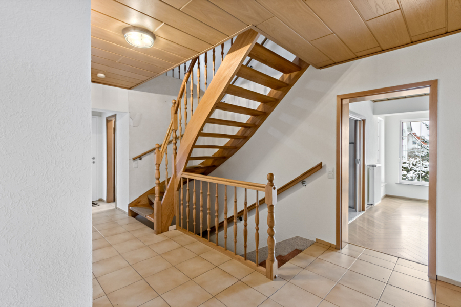 Das Haus ist vollständig unterkellert und eröffnet zusätzliche Nutzflächen. Neben einem Lagerraum steht ein weiterer großzügiger Raum zur Verfügung – beide sind mit Heizkörpern ausgestattet und können vielseitig genutzt werden. Gerade für größere Familien bietet sich dieser Bereich bei Bedarf auch für eine wohnähnliche Nutzung an. Ergänzt wird das Untergeschoss durch einen geräumigen Trocken- und Waschraum.