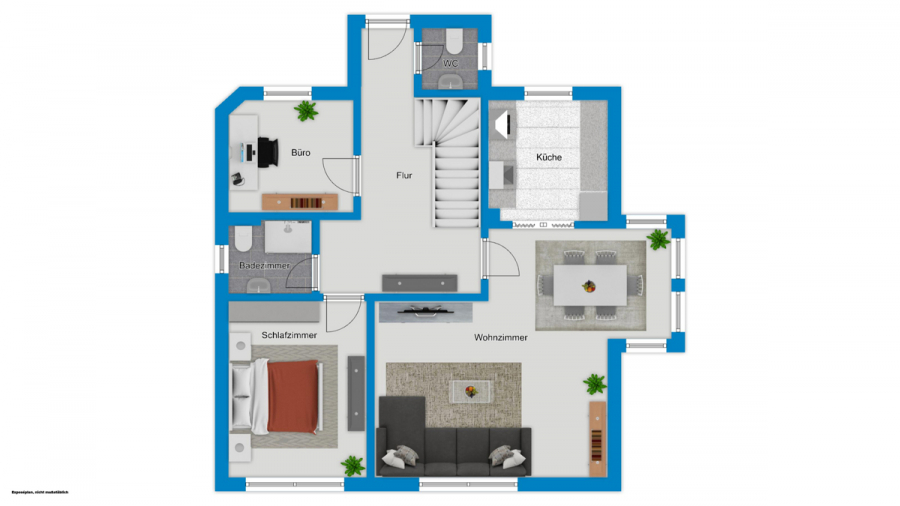 - Erdgeschoss mit Schlafzimmer, Arbeits-/Gästezimmer, Bad und Gäste-WC