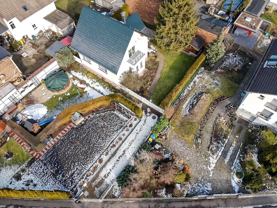 - Pflegeleichte Außenflächen mit Gartenhäuschen und Freifläche (Grillplatz/Pool möglich)