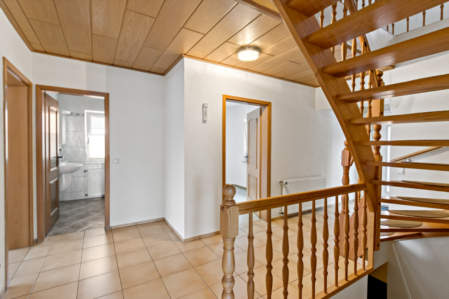 - Obergeschoss mit zwei großen Zimmern, eines davon mit Balkon