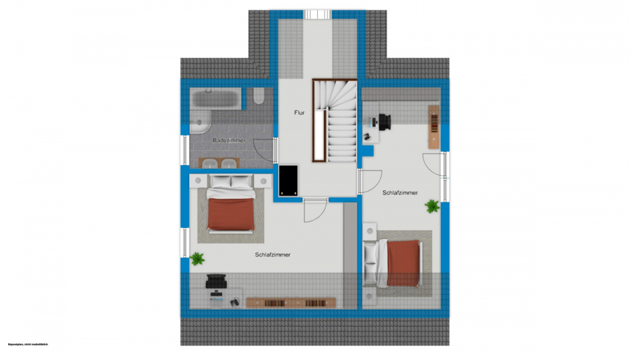 Im Dachgeschoss befindet sich derzeit weiterer Stauraum, der mit vergleichsweise geringem Aufwand zu einem zusätzlichen Zimmer ausgebaut werden kann und somit weiteres Potenzial bietet.