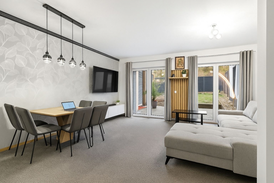 Dieses hochwertige Reihenhaus wurde 2024 fertiggestellt und vereint modernen Wohnkomfort, energieeffiziente Technik und eine großzügige Raumaufteilung, welche keine Wünsche offenlässt. Auf rund 155 m² Wohnfläche sowie ca. 174 m² Grundstücksfläche profitieren Sie von einer durchdachten Architektur mit viel Platz für Familie, Homeoffice und entspanntes Wohnen.