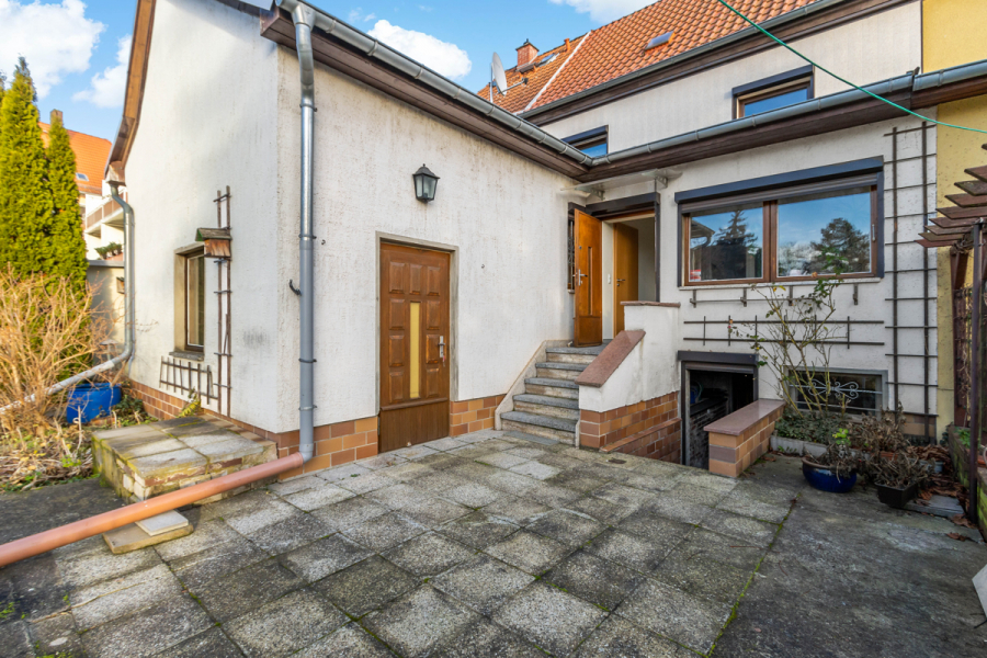 Das Reihenmittelhaus ist voll unterkellert und biete neben der Stellfläche im Keller auch zusätzlich Abstellmöglichkeit im Gartenanbau.