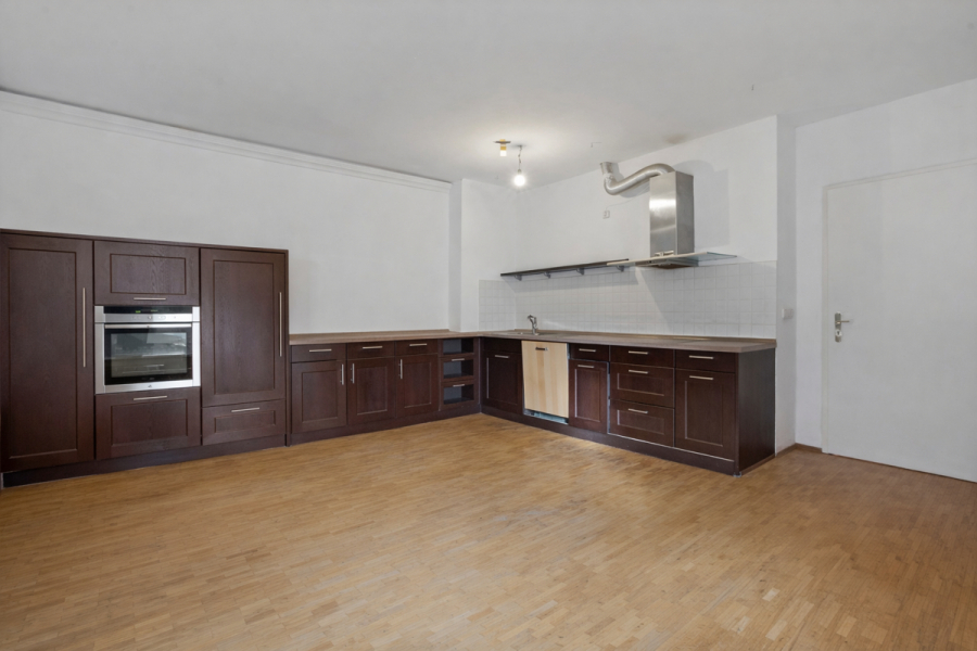 Der großzügige Küchenbereich bietet ausreichend Platz für Ihre individuelle Traumküche sowie einen gemütlichen Essbereich.