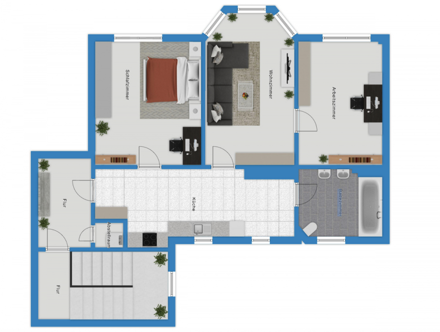 Abgerundet wird das Angebot durch eine praktische Abstellkammer mit Waschmaschinenanschluss.