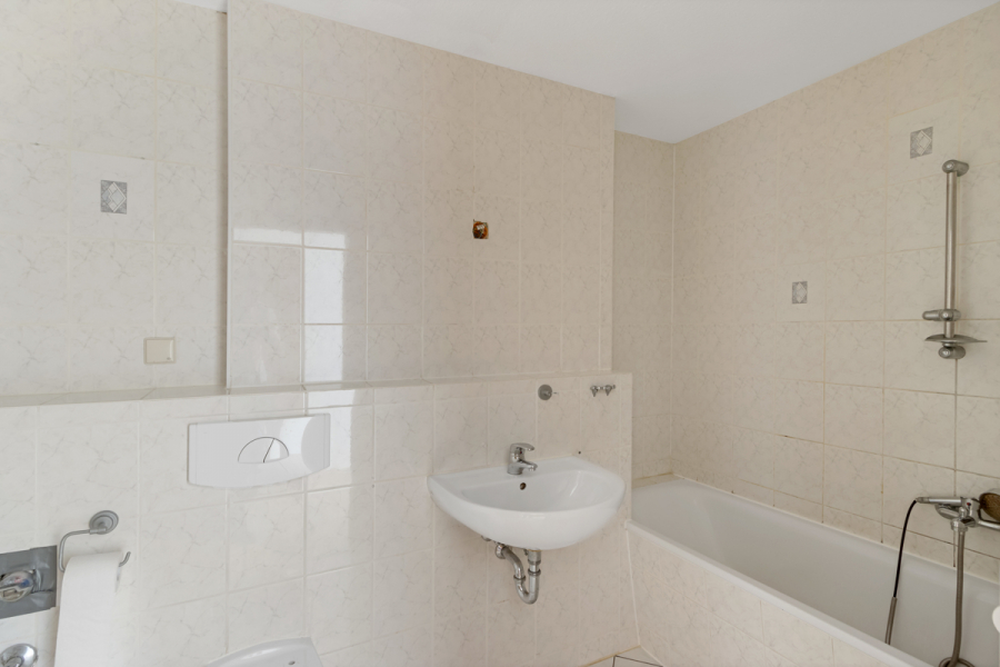 Das innenliegende Badezimmer ist mit einer Badewanne sowie einem Waschmaschinenanschluss ausgestattet.