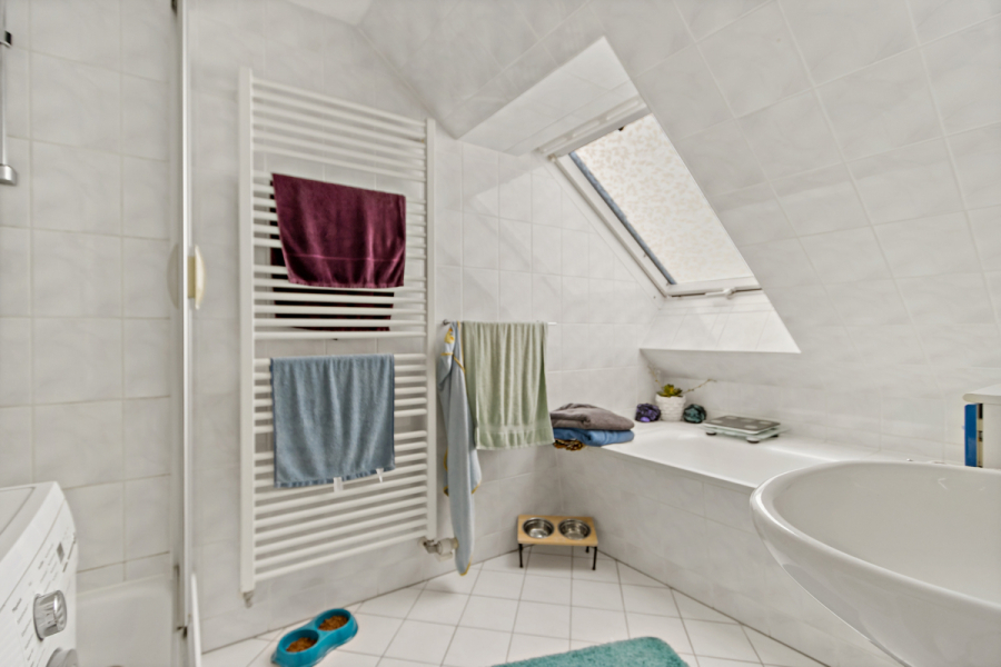 - Tageslichtbad mit Dusche, Badewanne und Fenster