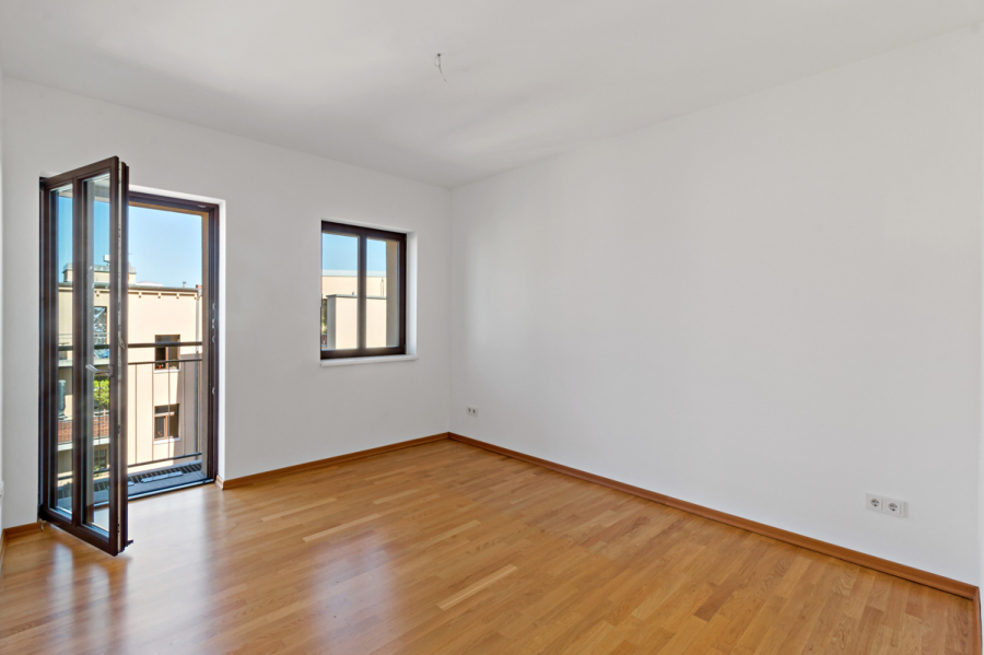 Drei weitere Zimmer mit Flächen zwischen rund elf und fünfzehn Quadratmetern eröffnen vielfältige Nutzungsmöglichkeiten als Kinder-, Gäste- oder Arbeitszimmer.