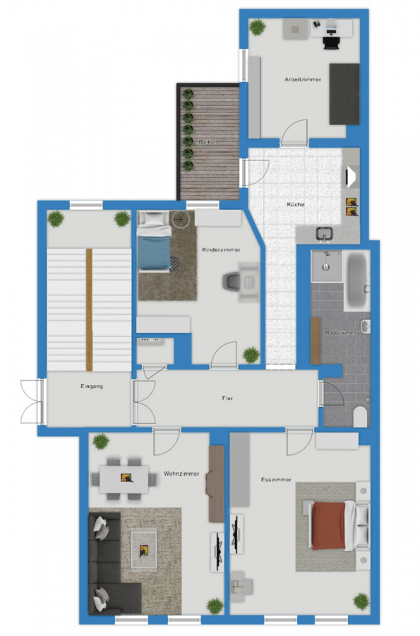 Das Wohnzimmer ist der Mittelpunkt der Wohnung und bietet ausreichend Platz, um sich eine kuschelige Wohnlandschaft einzurichten. Doch nicht nur das Wohnzimmer, sondern auch die drei weiteren lichtdurchfluteten Zimmer werden Ihnen gefallen.