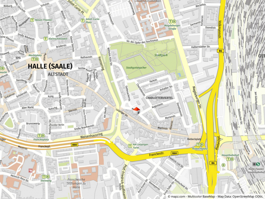 Die Martinstraße/ Leipziger Straße ist der ideale Ausgangspunkt für all Ihre Unternehmungen. In nur wenigen Gehminuten sind Sie am Hauptbahnhof oder auf dem Marktplatz, wo Sie jeweils eine ideale Anbindung an die öffentlichen Verkehrsmittel haben. Des Weiteren sind die Universität und viele der Fakultäten nur einen Katzensprung entfernt.