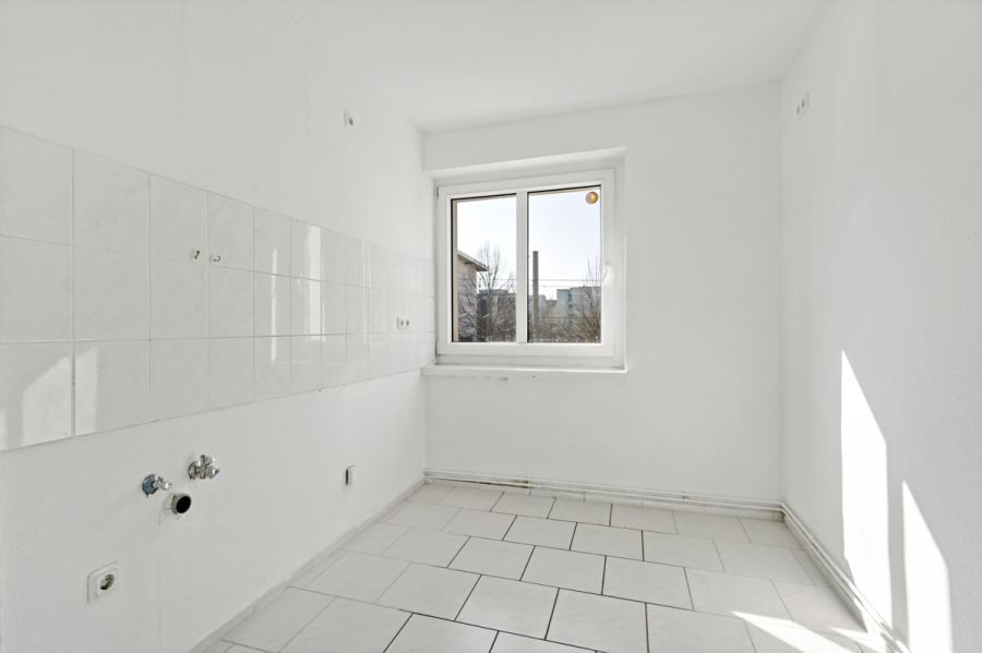 Das Schlafzimmer ist großzügig geschnitten und bietet ausreichend Platz für ein großes Bett und zusätzlichen Stauraum. Die Küche hat eine angenehme Größe und lässt sich ideal einrichten – ob für den schnellen Kaffee am Morgen oder das gemeinsame Abendessen.