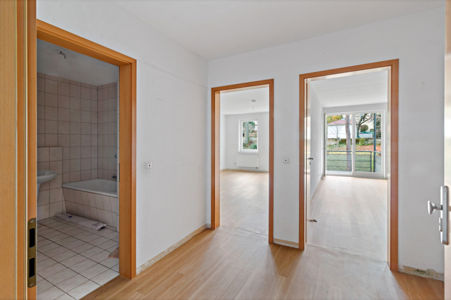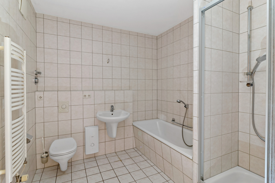 Bereits beim Betreten fällt der frisch neu verlegte Vinylfußboden ins Auge, der der Wohnung ein modernes und freundliches Ambiente verleiht. Das großzügige Badezimmer bietet sowohl eine Badewanne als auch eine separate Dusche – ideal für flexible Alltagsbedürfnisse. Die offene Küche verbindet Wohn- und Kochbereich harmonisch miteinander und schafft ein lichtdurchflutetes Raumgefühl.