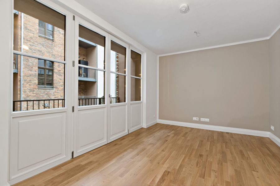 Das Herzstück der Wohnung ist die offene Küche, perfekt für alle, die gerne kochen und gesellige Abende mit Freunden und Familie lieben. Der elegante Parkettboden verleiht den Räumen eine warme und einladende Atmosphäre.